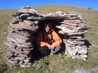 Sortim doncs diumenge ja dinats i després de dues hores i mitja (quilòmetre pocs, però molt revirats) arribem al refugi de Laurenti. És negre nit i només hi ha un cotxe. Entrem al refugi a saludar, malgrat la nostra intenció de dormir a fora. Hi trobem una parella de francesos de mitjana edat, amb qui després d'una estona i compartint l'hora de sopar, ja hem trencat el gel. A la vora del foc, amb olor de fum, música dels setanta i botifarra a la brasa, anem fent petar la xerrada. És negre nit quan muntem la tenda.