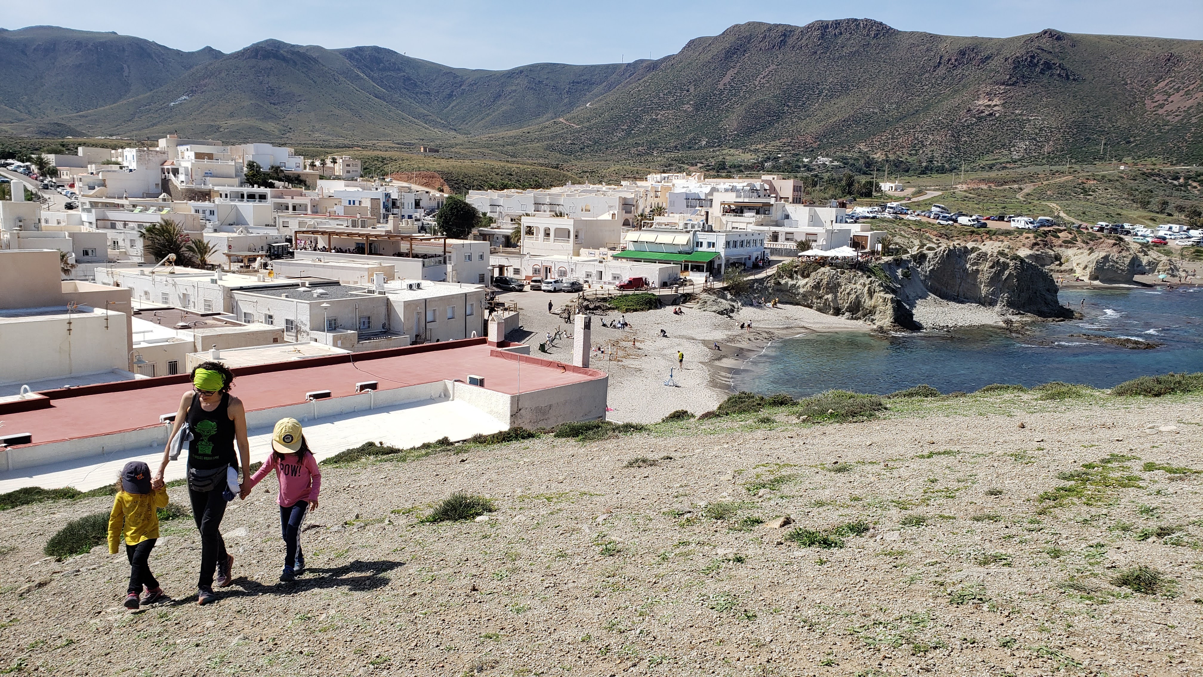 Després d'aquesta seguim cap amb el cotxe cap al sud. Parem i baixem a la Playa de los muertos, una altra joia amb majúscules. No ens hi banyem pas, perquè volem seguir més al sud. Visitem el poble de la Isleta, molt xulo i ens qui quedem a dinar. A la tarda encara allarguem el dia visitant la playa del Mónsul amb la duna "rampante" i fem un intent a la playa de los Genoveses, que es veia molt xula des de l'aparcament però no aconseguim arribar-hi, doncs un excèrcit de mosquits ens barra al pas. De fet tots els que venen de la platja ho fan corrent i atabalats pels mosquits, que semblen piranyes. Canvi de plans, cap dins la furgo i bon vent i barca nova! Avui toca a més conduir un bon tros, tres horets per escurçar la tornada de demà