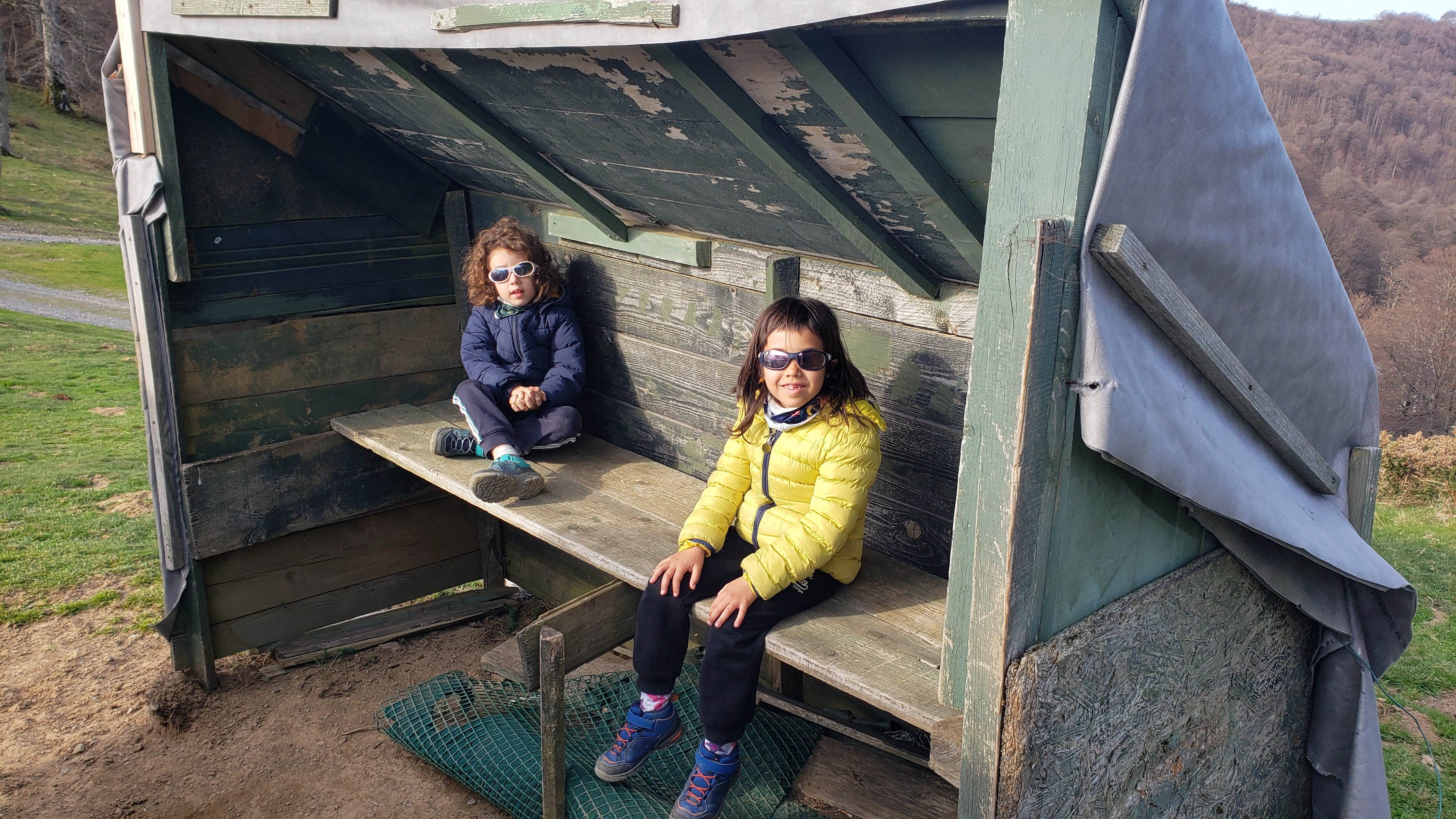 Diumenge ens llevem i sortim a caminar per fer una volta de 3 horetes, uns 7 km i +500 per tenir bones vistes de la zona pujant el Pic des Escaliers i el Arhanolatze Gaïna, on encara trepitgem neu. Prats verds de la "Heidi" de bon caminar i amb bon dia. Davant nostre tenim un grup de tres francesos jubilats, que atrapem al segon cim, i on la senyora molt amable els hi dona quatre "ouets" de pasqua de xocolata a les nenes, que estan molt contentes! Seguim la nostra ruta i baixem caminant fins un petit refugi i després fins a la pista, no sense que abans la pobra Nora s'emporti un cop de pal del papa que s'ha girat sense mirar.mentre li netejava les ulleres al riu..quin greu, sort que no ha estat res. Tornem fins al cotxe i cap a dinar falta gent, al poble de Saint Jean Pied de Port, on aprofitem per banyar-nos al riu que fa força calor i està ben neta! Amb la panxa plena seguim ruta, parant de tornada a Roncesvalles per fer una mica la visita, que tampoc hi havíem estat mai. Contiuem i anem cap a la zona d'Irati per la part espanyola, visitant l'antiga fàbrica d'armes i pujant a l'embassament d'Irati a fer una passejada. Inmenses fagedes però que encara no han rebrotat. L'embassament és ben ple, però en canvi el bosc es veu sec, tampoc deuen anar sobrats d'aigua! Finalment acabem el dia dormint a Agoitz, doncs dilluns tenim 5 hores de tornada i volem menjar la mona a casa!